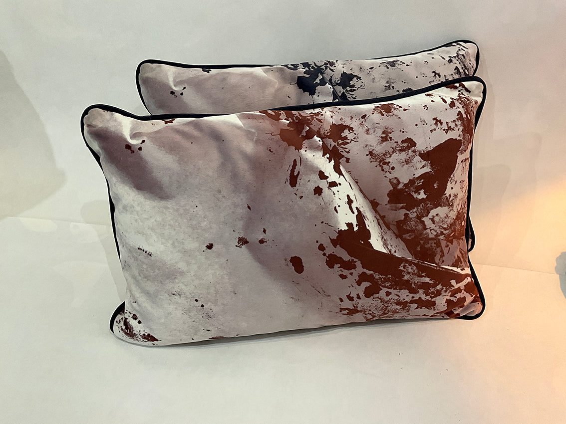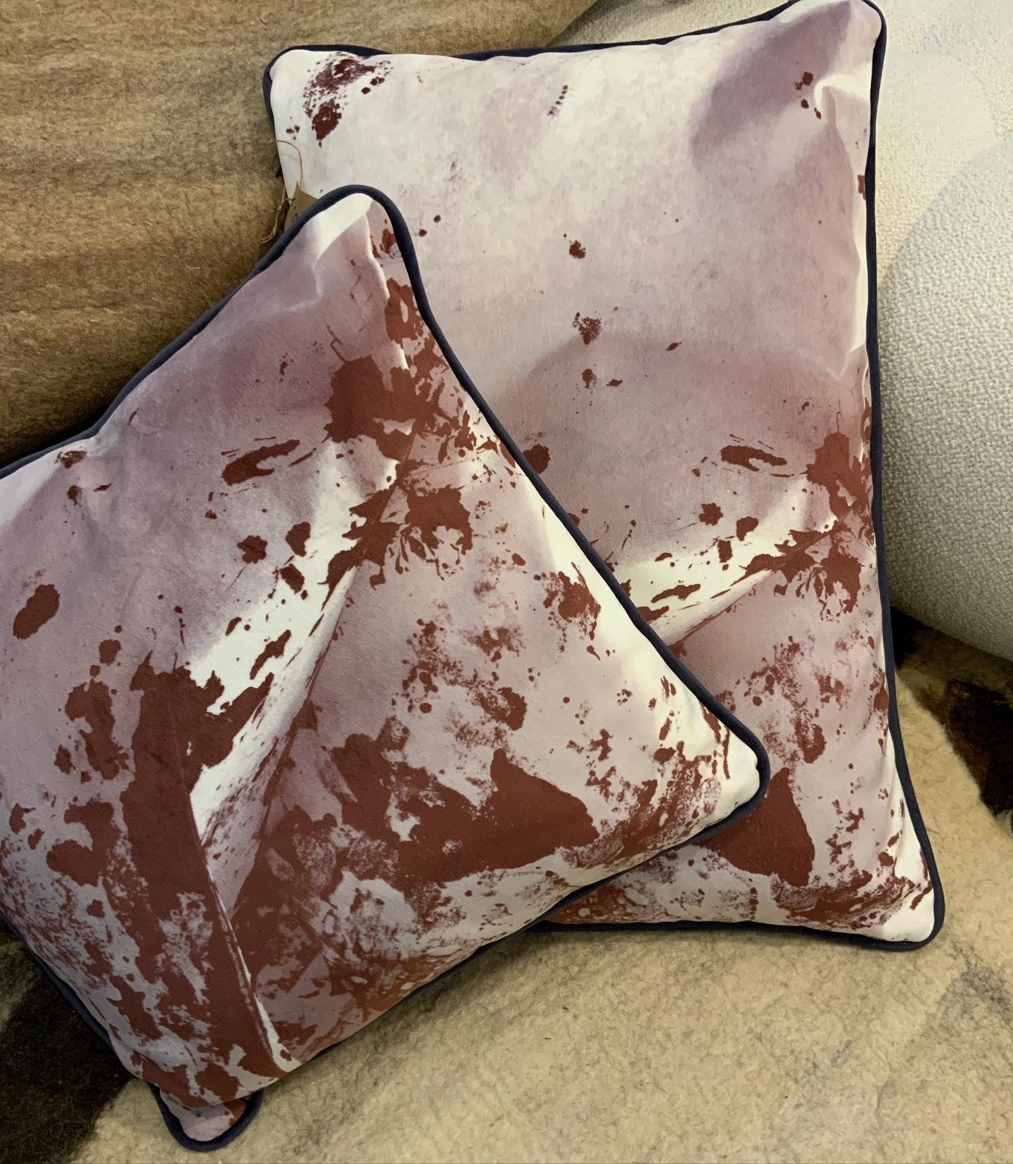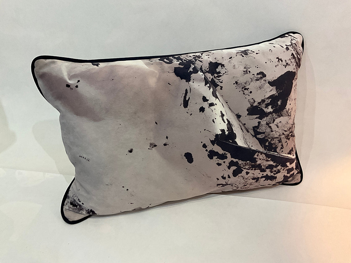 Coussins en velours avec décors montagne, identiques au recto et au verso