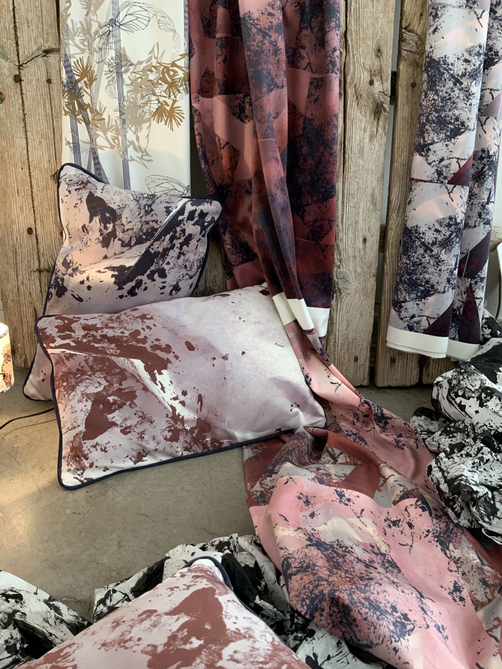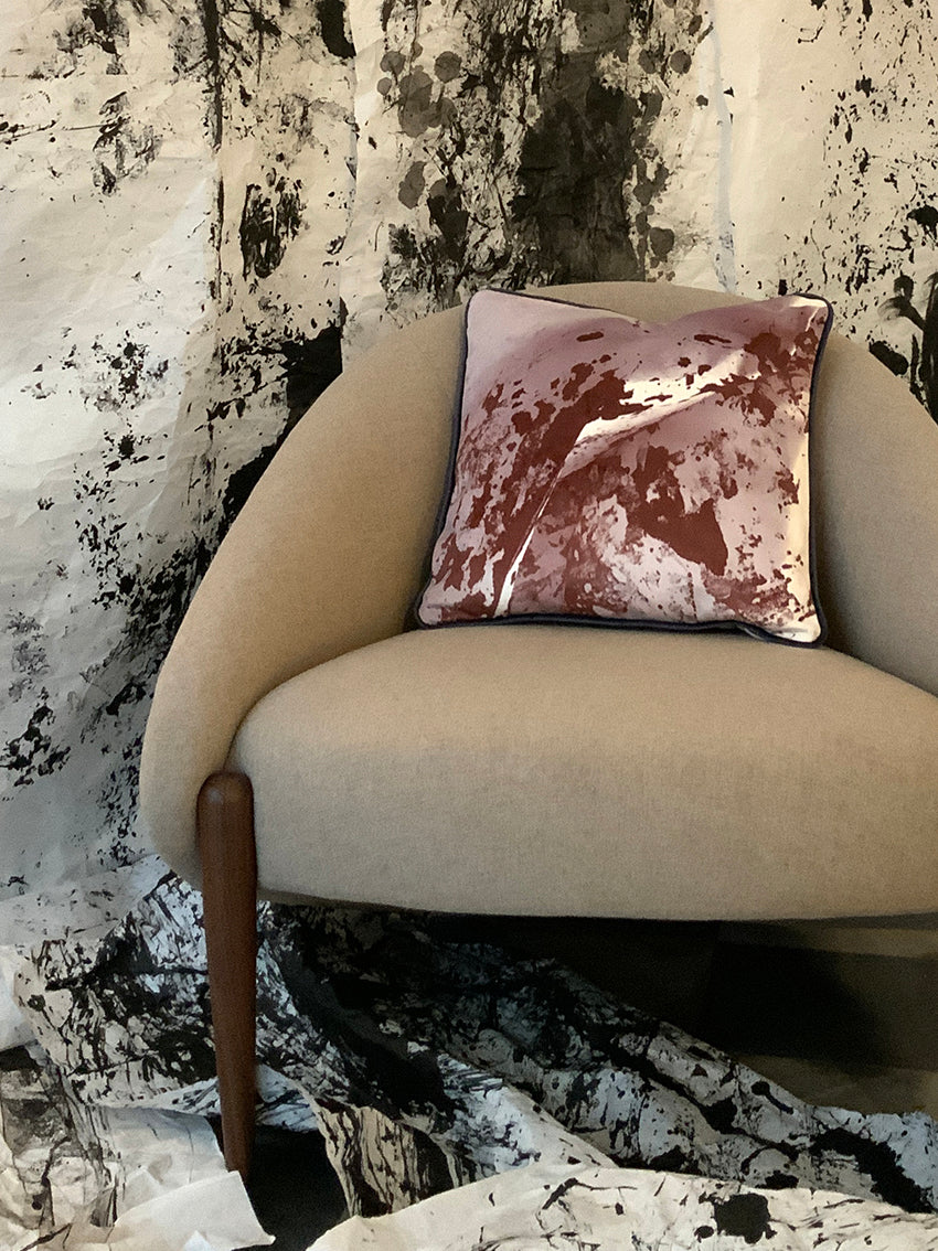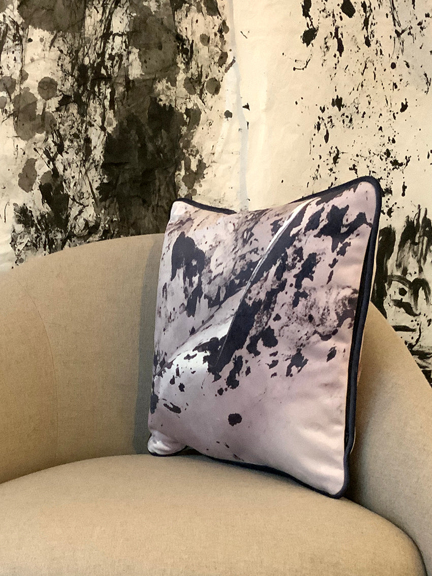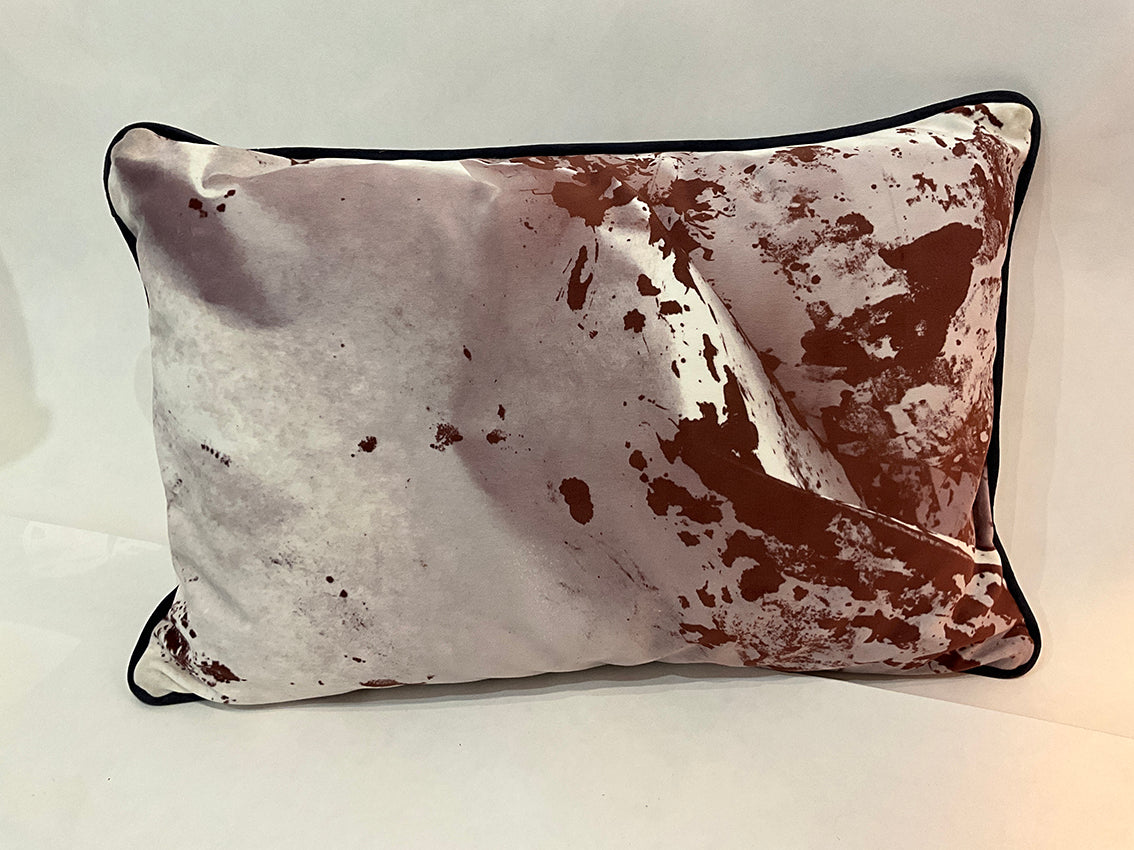 Coussins en velours avec décors montagne, identiques au recto et au verso